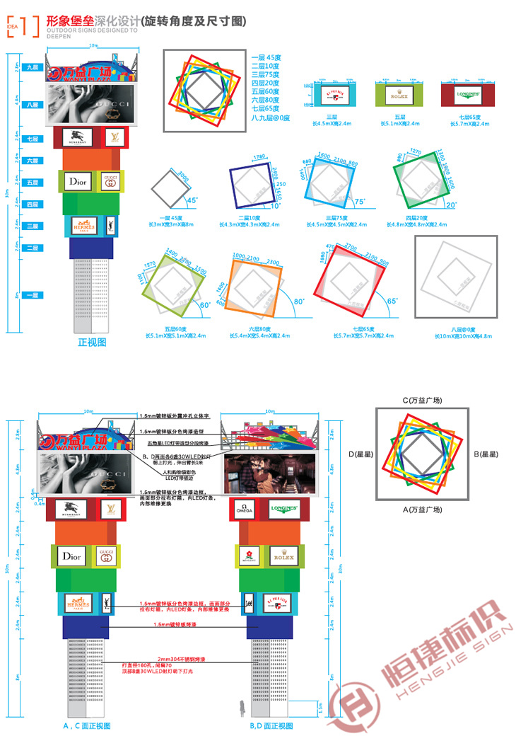 精神堡壘的擺放的位置也尤其重要,人都有視覺盲點,首先精神堡壘給人一種清新和諧的感覺,其有很高的能見度,通常安置在企業比較醒目的區域。這個區域也是要經過合理的運算,處在黃金分割點處等。其設計風格及要求必須能充分表達企業的形象,文化及精神,更能給人在視覺上和信息傳遞上得到一種肯定。設計簡約,工藝獨特。精神堡壘所涉及的行業范圍很廣,如酒店,公司,企業,房產,商務樓,商業街,大型廣場等等。制作材料主要用不銹鋼,led燈,油漆,亞克力,鋼管等作成,具體工藝因設計圖紙而定。